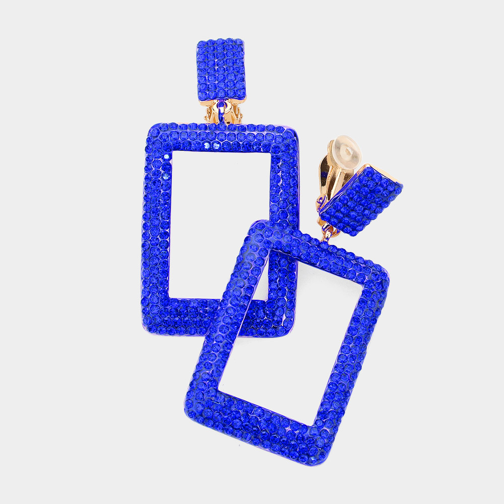 Rhinestone Embellished Open Rectangle Dangle Evening Earrings