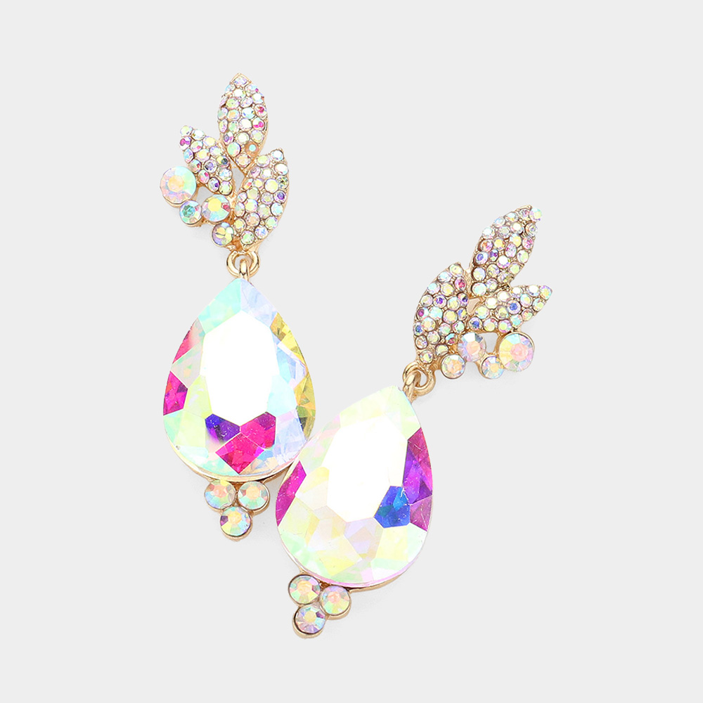 Rhinestone Pave Leaf Crystal Teardrop Evening Earrings