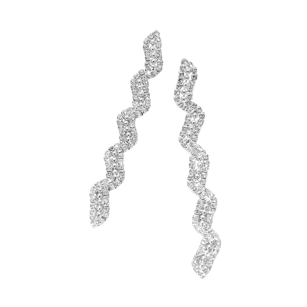 Rhinestone Paved Wavy Drop Evening Earrings Rhinestone Paved Wavy Drop Evening Earrings