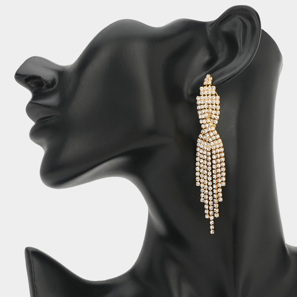 • Glamorous long rhinestone tassel drop earrings featuring cascading strands that create dramatic movement and sparkling shine. Their bold silhouette makes them perfect for evening events, parties, formal occasions, or elevating any outfit with a high-impact, elegant statement look.
