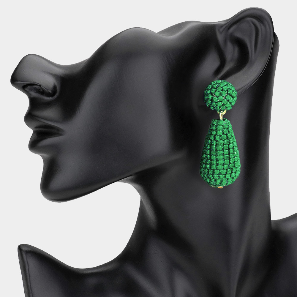 Teardrop Pointed Rhinestone Embellished Dangle Evening Earrings