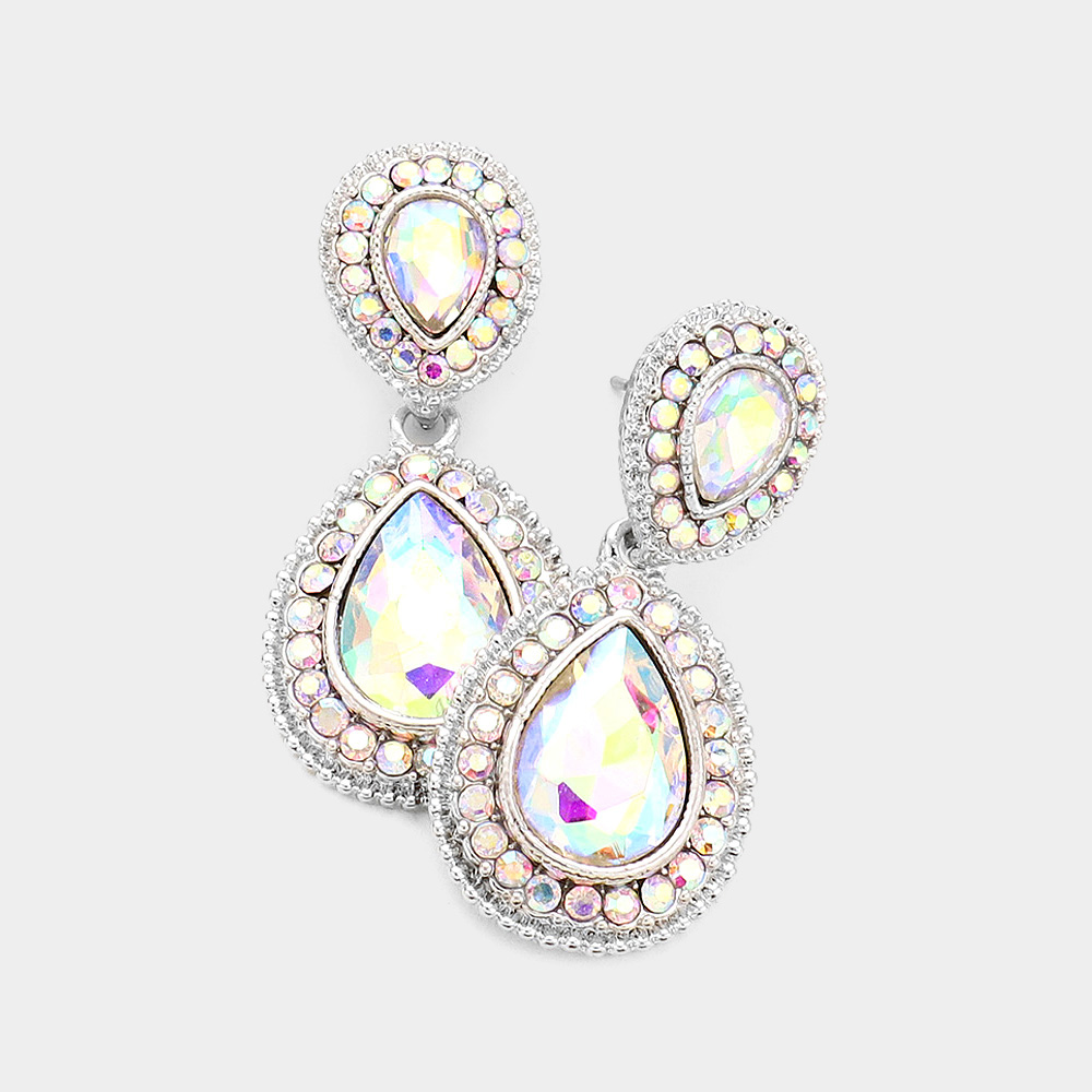 Rhinestone Trim Teardrop Evening Earrings