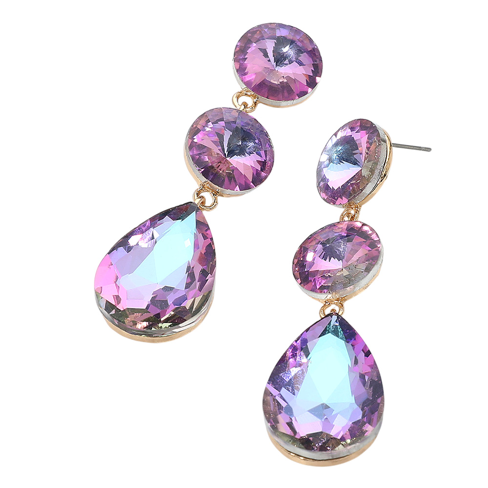 • Bold teardrop dangle earrings with faceted stones and round stud accents. Designed for a striking, glamorous touch, these earrings are ideal for evening events, weddings, or adding sparkle to any special occasion.