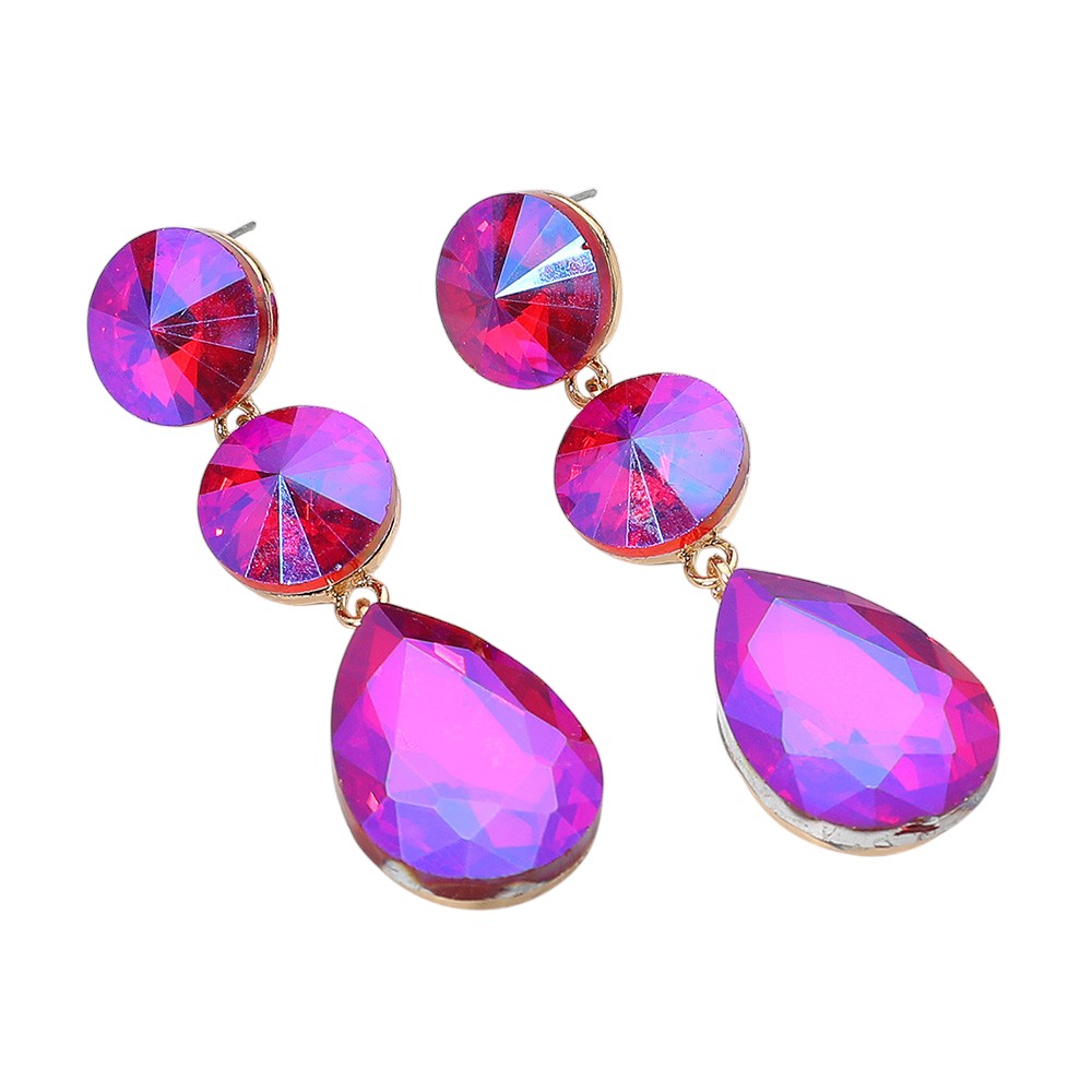 • Bold teardrop dangle earrings with faceted stones and round stud accents. Designed for a striking, glamorous touch, these earrings are ideal for evening events, weddings, or adding sparkle to any special occasion.
