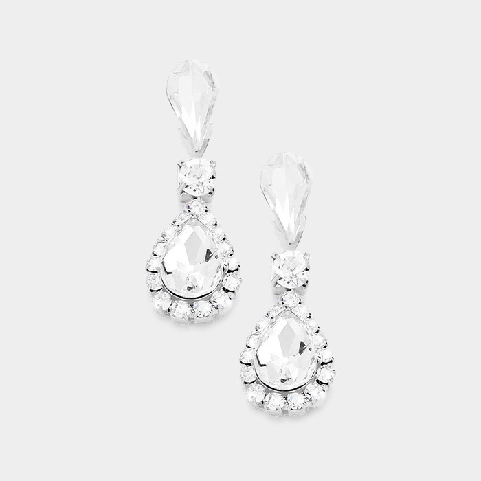 Stone Trim Crystal Teardrop Dangle Evening Earrings