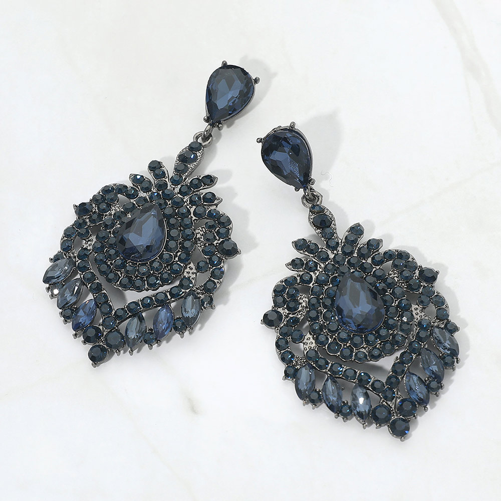 • These statement crystal drop chandelier earrings feature an intricate layered design with faceted accents that catch the light from every angle. Designed to elevate evening looks, weddings, and special events, they add bold sparkle and refined glamour while remaining comfortable to wear. A striking accessory that instantly enhances dresses, formal outfits, or party-ready styles.