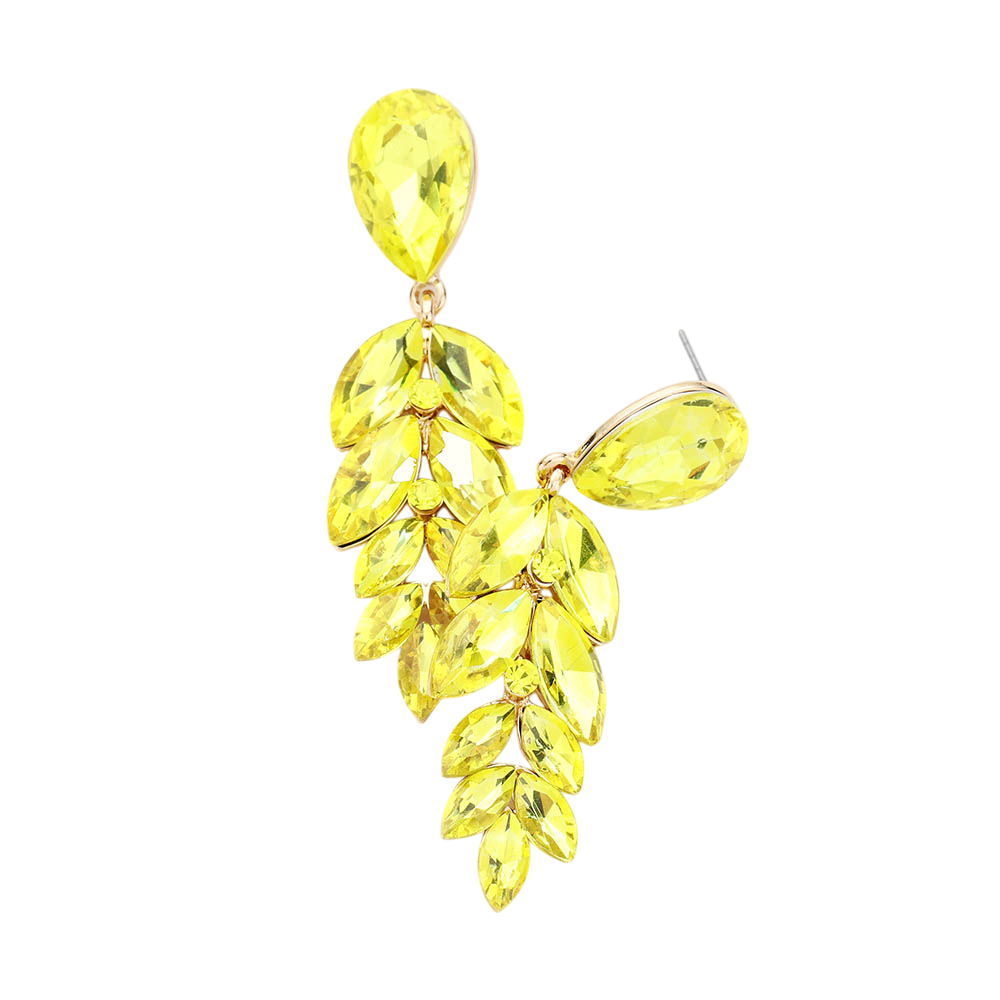 • Elegant drop earrings featuring a teardrop top and cascading marquise-cut stones arranged in a leaf-inspired silhouette. Light-catching and refined, these statement earrings add a glamorous finishing touch to evening outfits or special occasions.