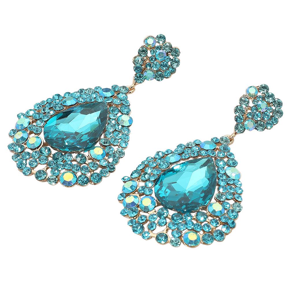 Details • Size : 1.75" X 3" • Post Back • Turn heads with these bold teardrop statement earrings featuring a dramatic faceted design that exudes elegance and confidence. Perfect for formal occasions, parties, or night outs, these earrings add a touch of glamour and sophistication to any chic ensemble. • Lead and Nickel Compliant