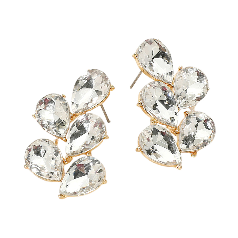 • Make a striking impression with these teardrop cluster statement earrings featuring faceted detailing and a dramatic silhouette. Perfect for elevating evening wear, parties, and special occasions with a bold, glamorous touch.