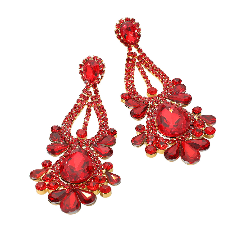 Teardrop Stone Cluster Statement Evening Earrings Teardrop Stone Cluster Statement Evening Earrings