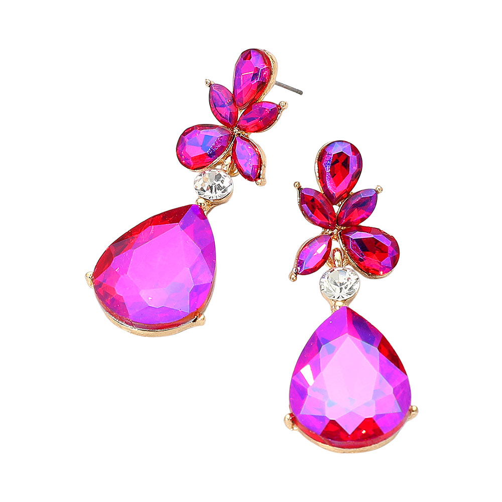 • Make a striking impression with these faceted teardrop statement earrings. Featuring bold, multi-cut stones arranged in a floral-inspired design, they capture light beautifully for a refined yet dramatic finish—perfect for evening wear or elevating any special occasion look.