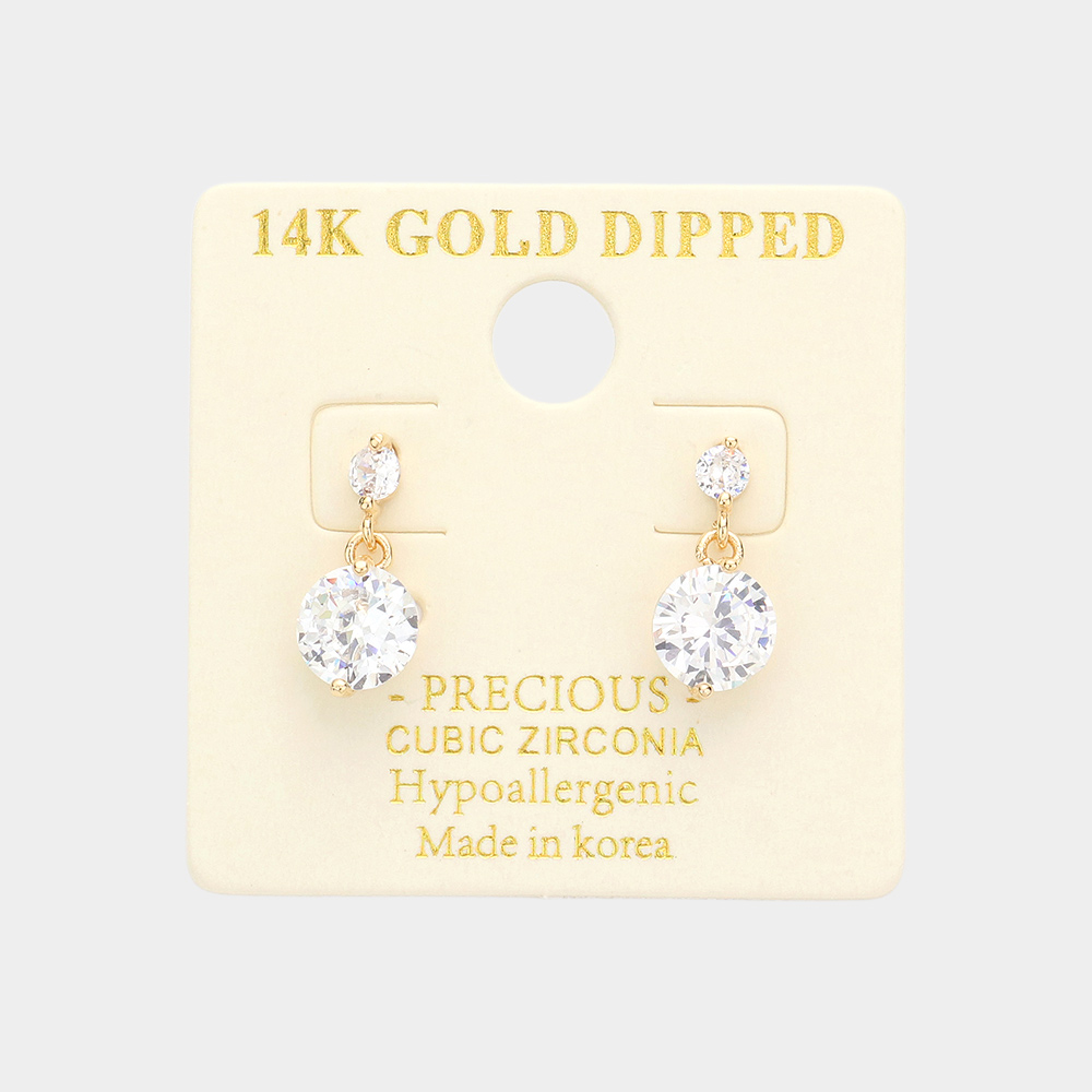 14K Gold Dipped Double CZ Link Dangle Earrings