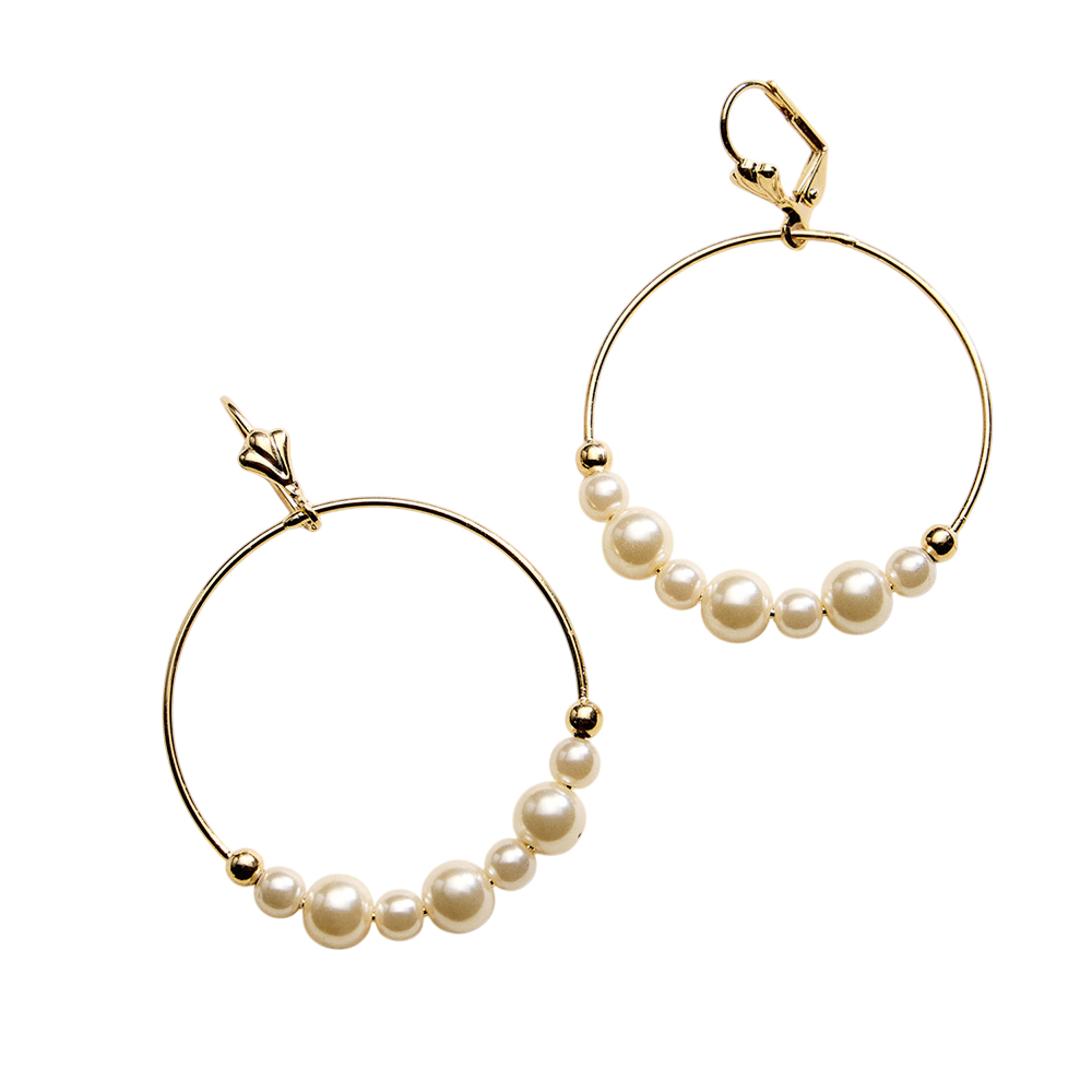 Details • Size : 1.6" X 2.3" • Lever Back • Elegant hoop clip earrings designed with a smooth circular silhouette and a row of pearl style accents for a polished, timeless look. Lightweight and easy to wear, these hoops add refined charm to everyday outfits, special occasions, bridal styling, and gift-ready jewelry collections for boutiques and fashion retailers. • Gold Filled • Hypoallergenic • Lead and Nickel Compliant • Made In Brazil