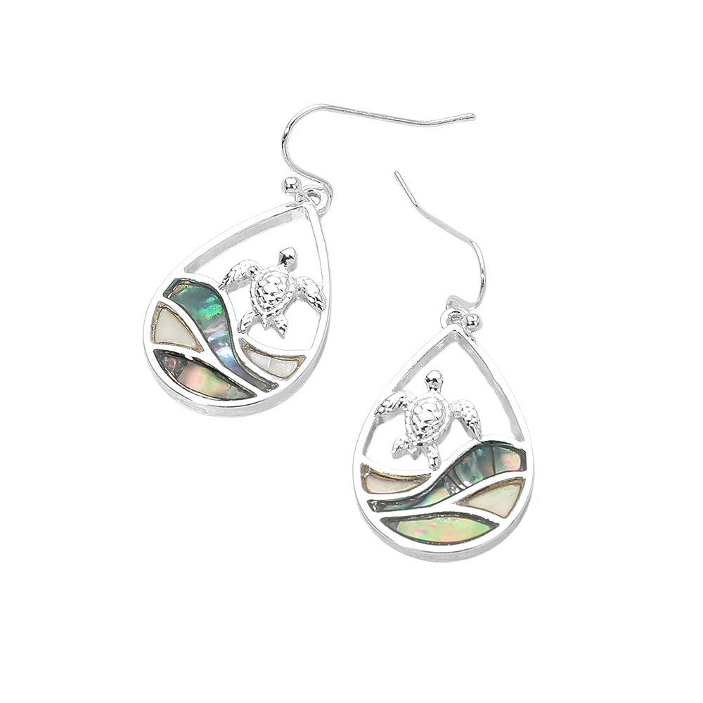 Abalone Sea Turtle Wave Teardrop Dangle Earrings