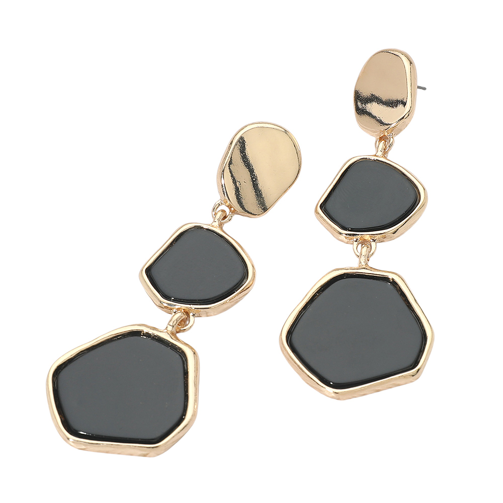 Details • Size : 1.25" X 3.5" • Post Back • These abstract geometric drop earrings feature bold, asymmetrical shapes that create a chic modern look. Their artistic design adds a touch of sophistication and versatility, perfect for enhancing both casual and evening outfits with effortless contemporary style. • Lead and Nickel Compliant