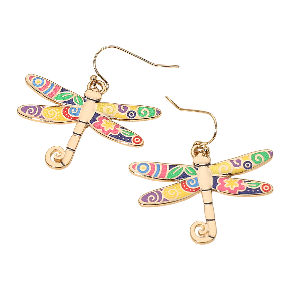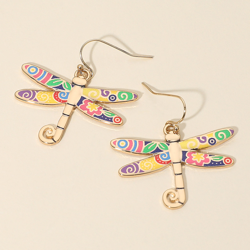 • These dragonfly drop earrings showcase expressive wing patterns with swirling, artistic detailing that adds a lively touch to any outfit. Designed for those who appreciate creative, standout accessories, they bring a whimsical charm and unique visual appeal to everyday or special-occasion styling.