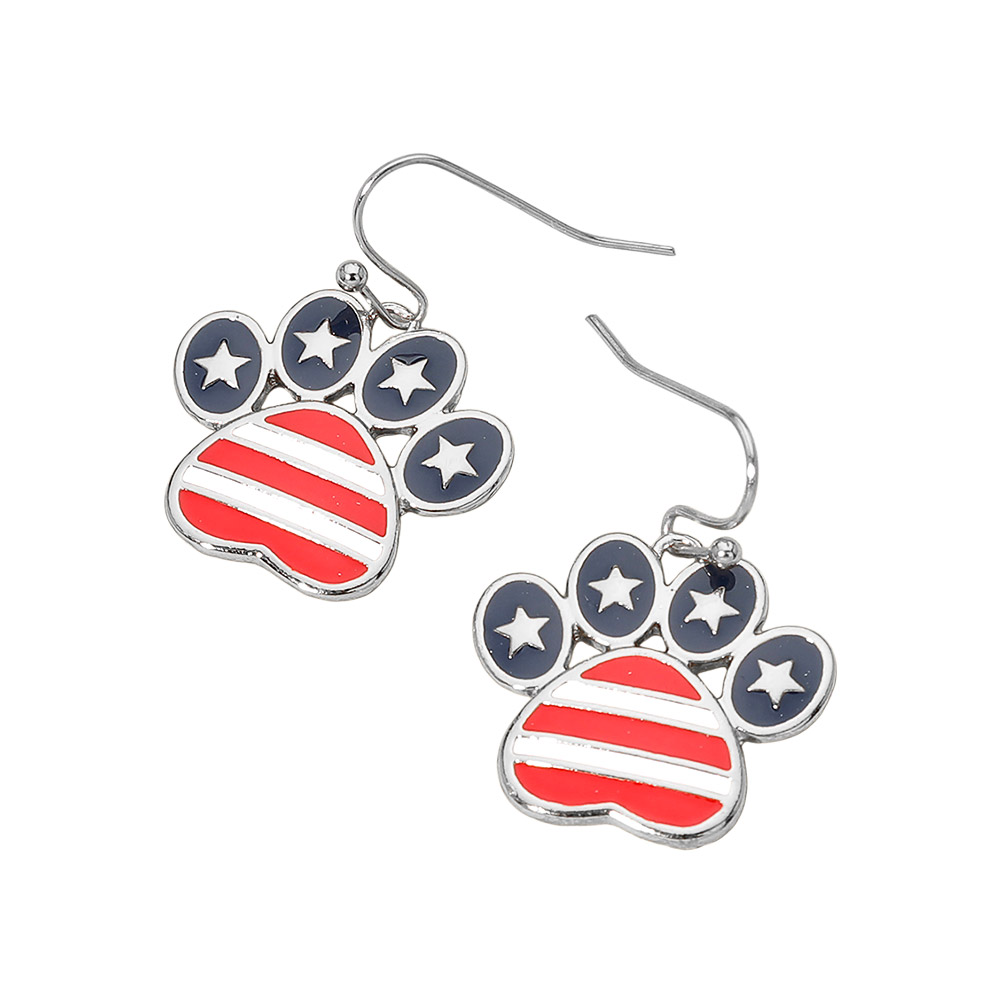 American USA Flag Paw Drop Dangle Earrings American USA Flag Paw Drop Dangle Earrings