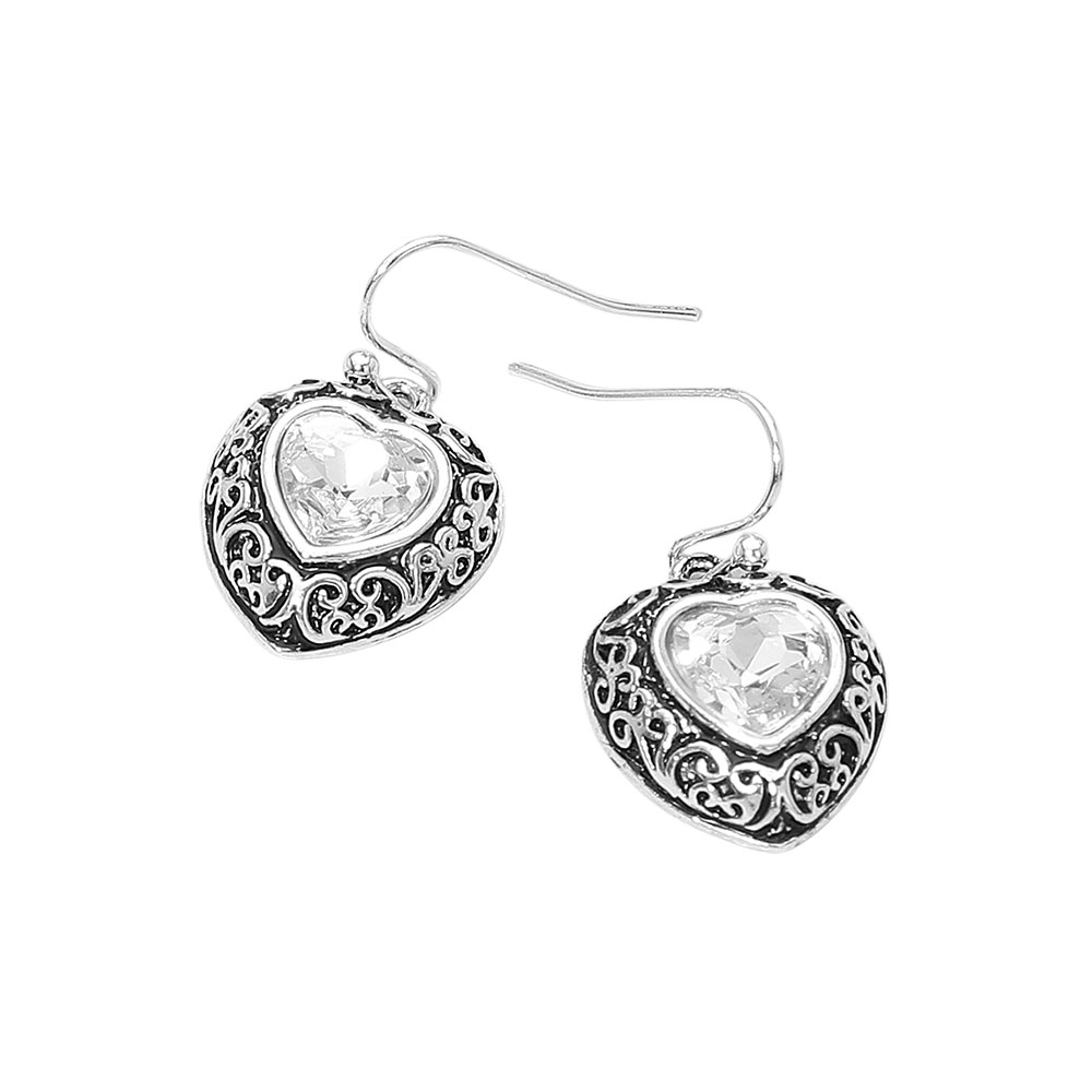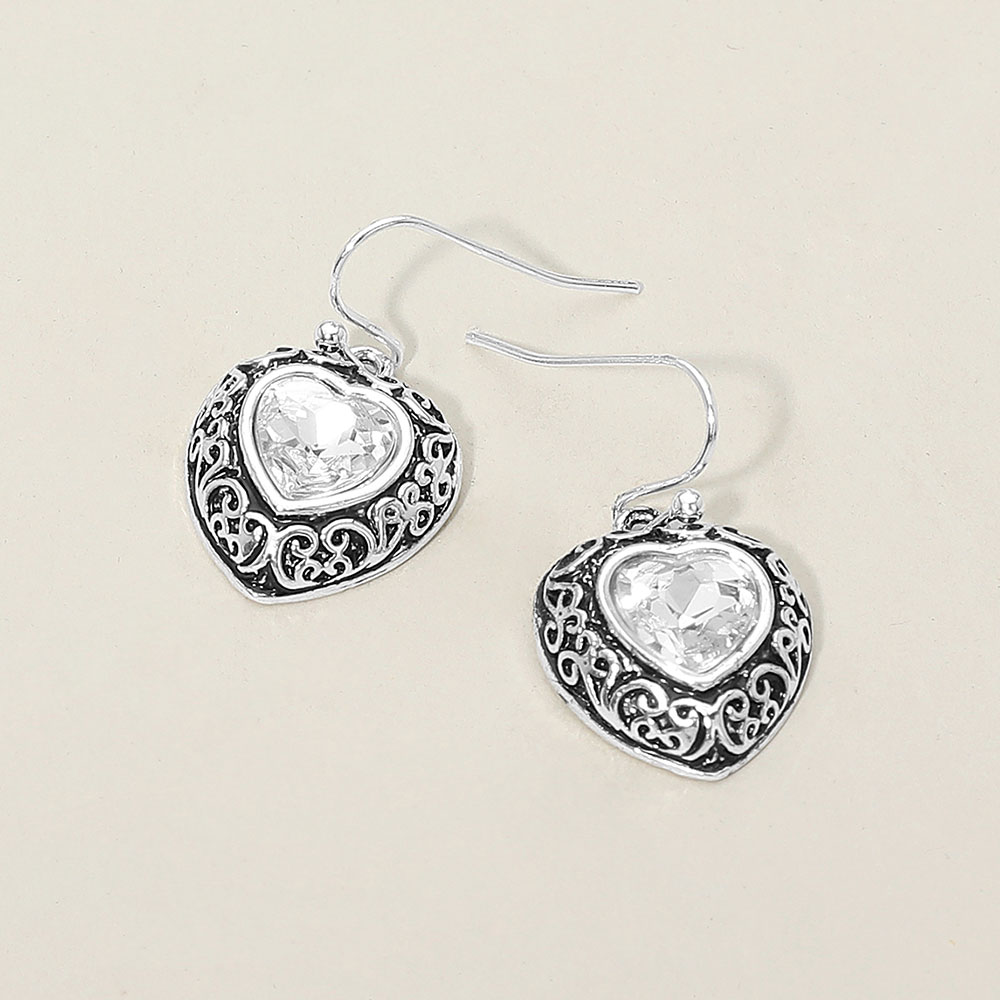 • Elevate your style with these heart drop earrings featuring an ornate framed setting and classic hook design for easy wear. Perfect for daily outfits or evening looks, they add a romantic sparkle and graceful movement while delivering lightweight comfort and versatile elegance.