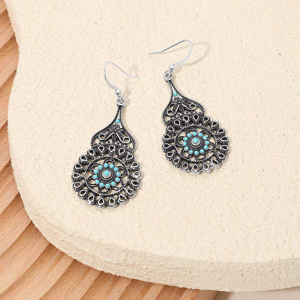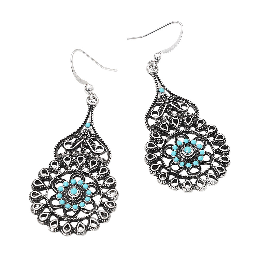 Details • Size : 1" X 2.5" • Fish Hook Back • Embrace free-spirited elegance with these Bohemian Filigree Teardrop Dangle Earrings. Detailed with intricate floral patterns and ornamental accents, they offer a perfect balance of vintage artistry and modern flair—ideal for casual outfits, festivals, or adding a statement touch to your style. • Lead and Nickel Compliant