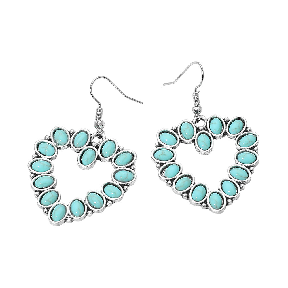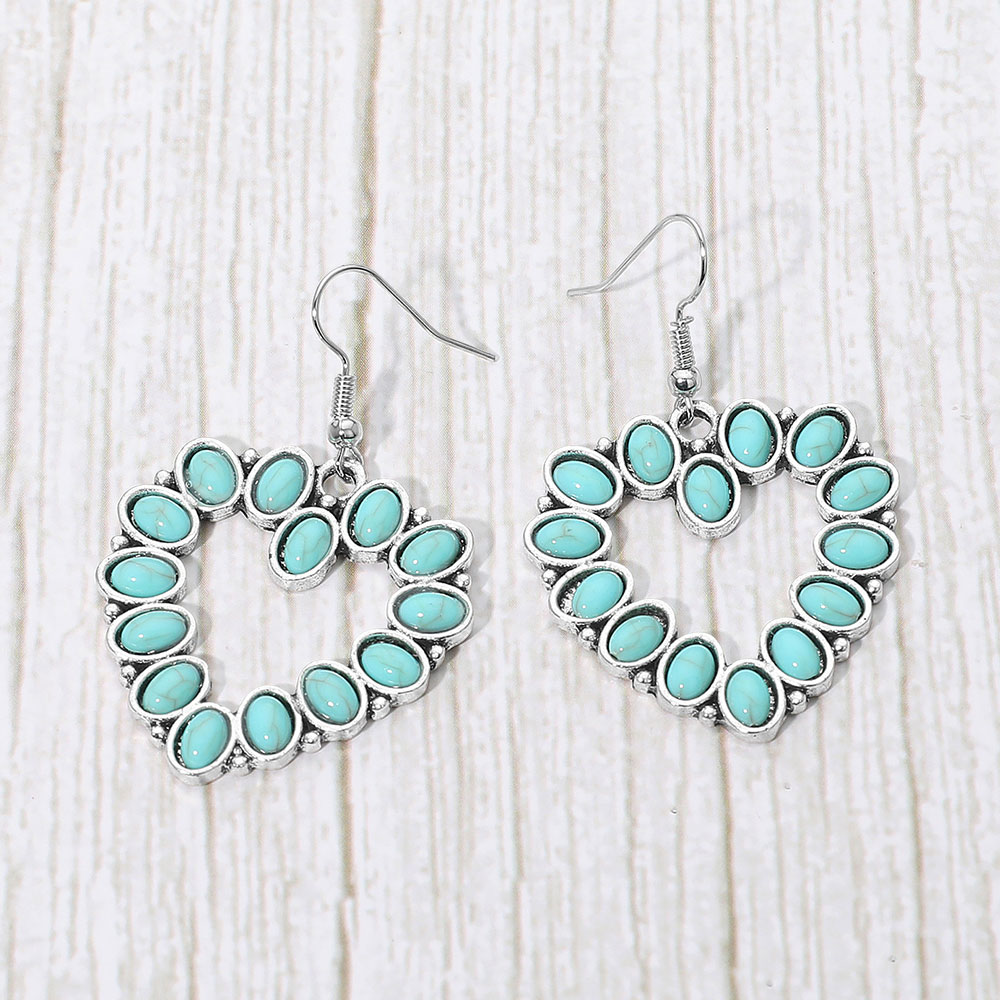 Boho Oval Stone Open Heart Dangle Earrings Boho Oval Stone Open Heart Dangle Earrings
