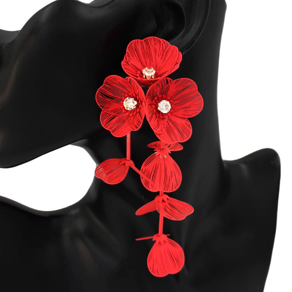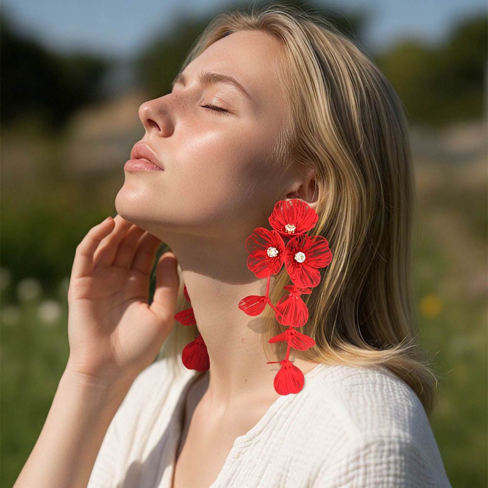 • Eye-catching floral cascade drop earrings designed to create elegant movement and bold impact. Features layered flower details with a lightweight feel, perfect for boutiques, resort wear, special events, and trend-forward collections seeking standout statement accessories.