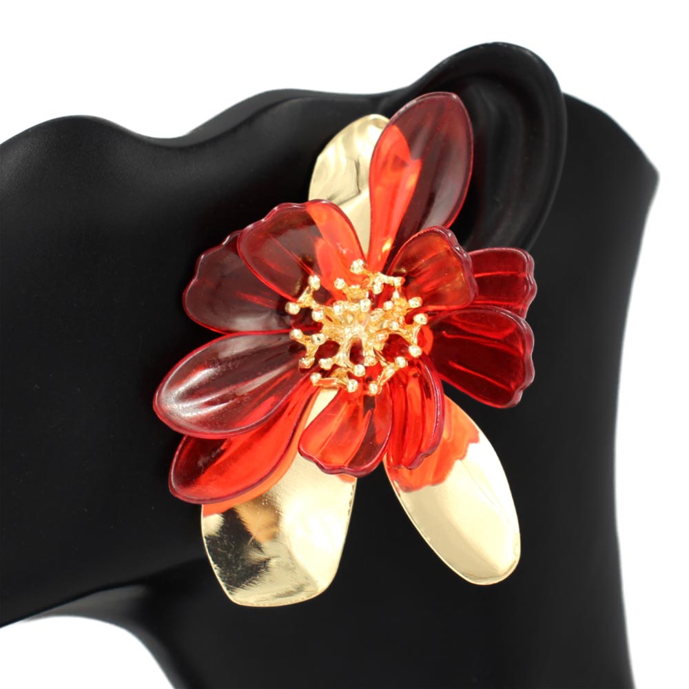 • Bold floral drop earrings designed with layered petal shapes and sculptural details for standout fashion styling. Ideal for boutiques, seasonal displays, special occasions, and statement looks, these earrings add dimension and elegance to both casual and dressy outfits.