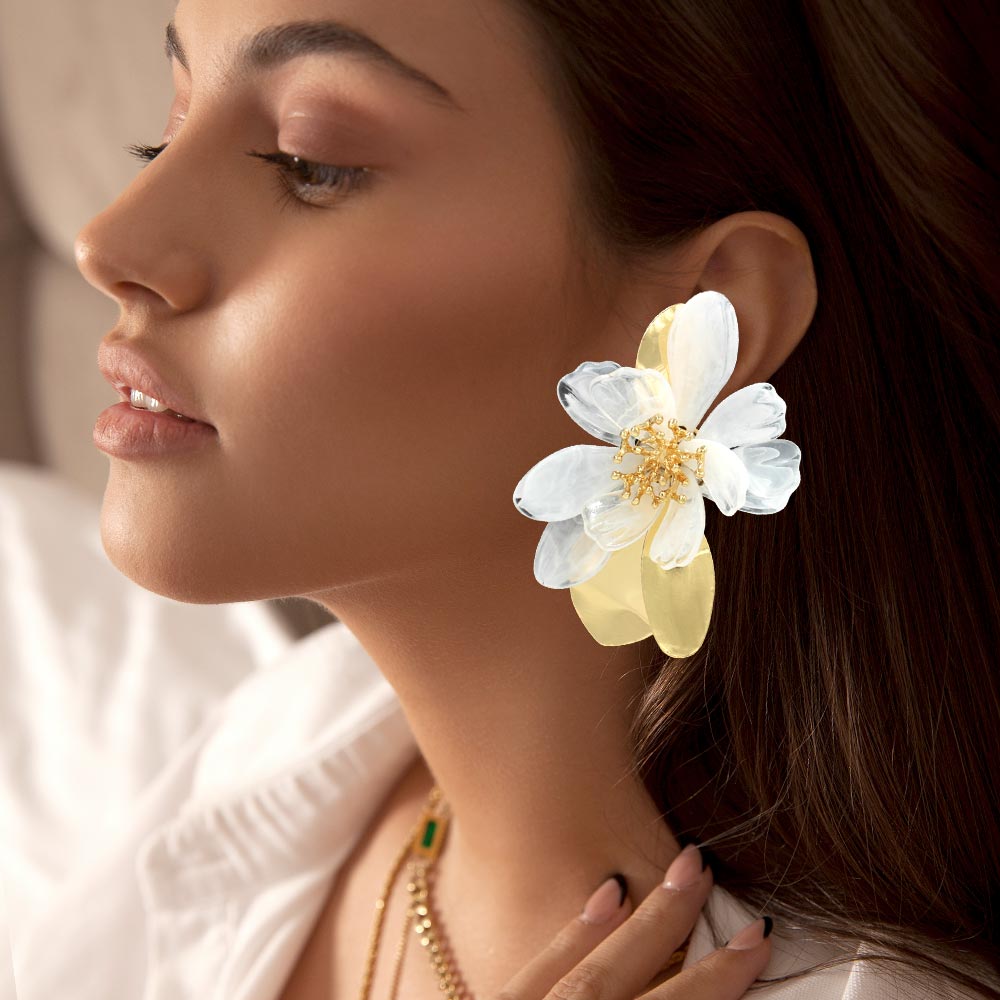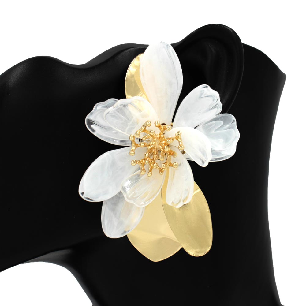 • Bold floral drop earrings designed with layered petal shapes and sculptural details for standout fashion styling. Ideal for boutiques, seasonal displays, special occasions, and statement looks, these earrings add dimension and elegance to both casual and dressy outfits.