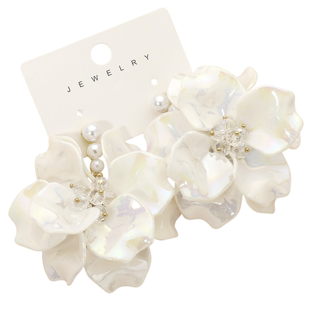 Details • Size : 2.5" X 2" • Post Back • Statement floral drop earrings designed with layered petal styling and dimensional detail for standout looks. Ideal for boutiques, seasonal assortments, gift displays, and trend-driven collections. A bold accessory choice for special occasions and everyday fashion edits. • Lead and Nickel Compliant