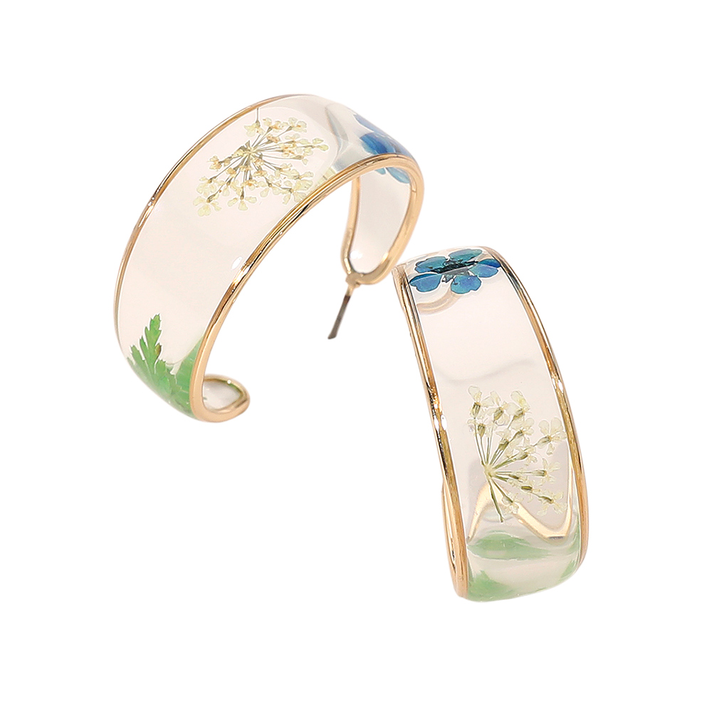 Details • Size : 1.3" X 1.3" X 0.6" • Post Back • Elegant hoop earrings featuring a smooth, contemporary silhouette with a nature-inspired design captured within clear contours. Lightweight and comfortable for everyday wear, they add a refined artistic touch to casual outfits while complementing dressier looks for evenings, events, or special occasions. • Lead and Nickel Compliant
