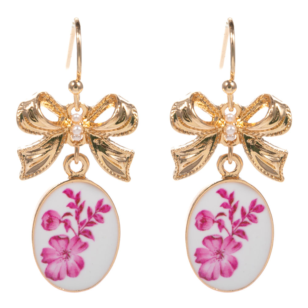 Bow Enamel Oval Floral Charm Link Drop Dangle Earrings Bow Enamel Oval Floral Charm Link Drop Dangle Earrings