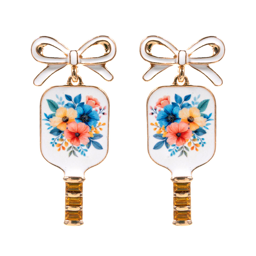 Bow Floral Pickleball Paddle Dangle Earrings