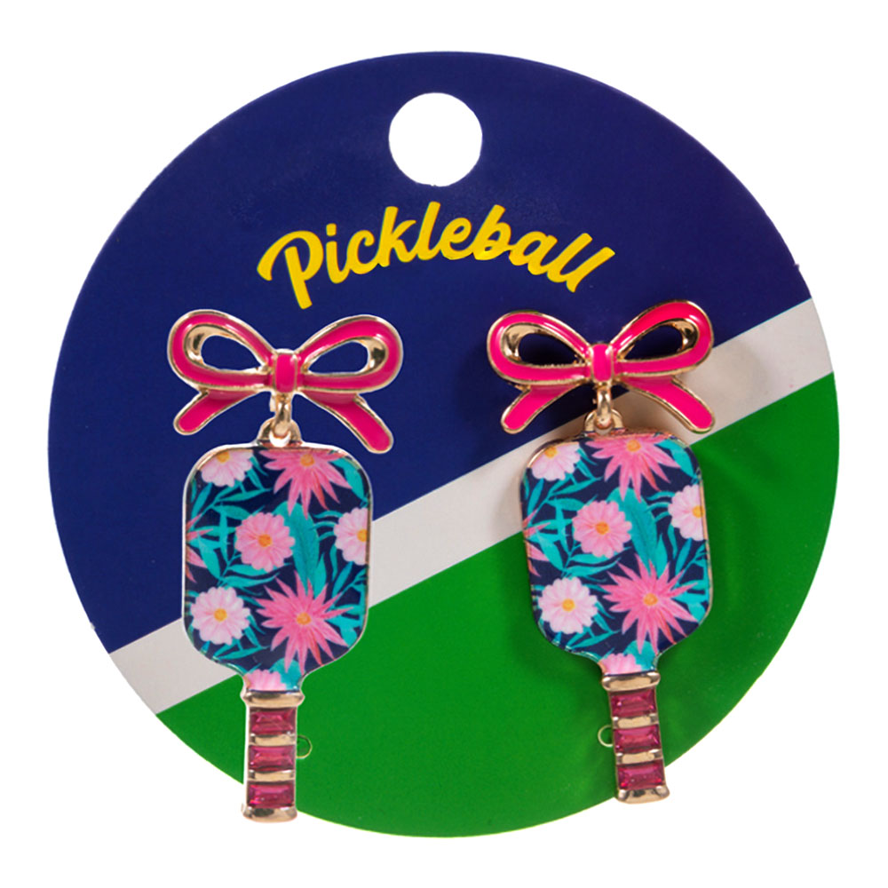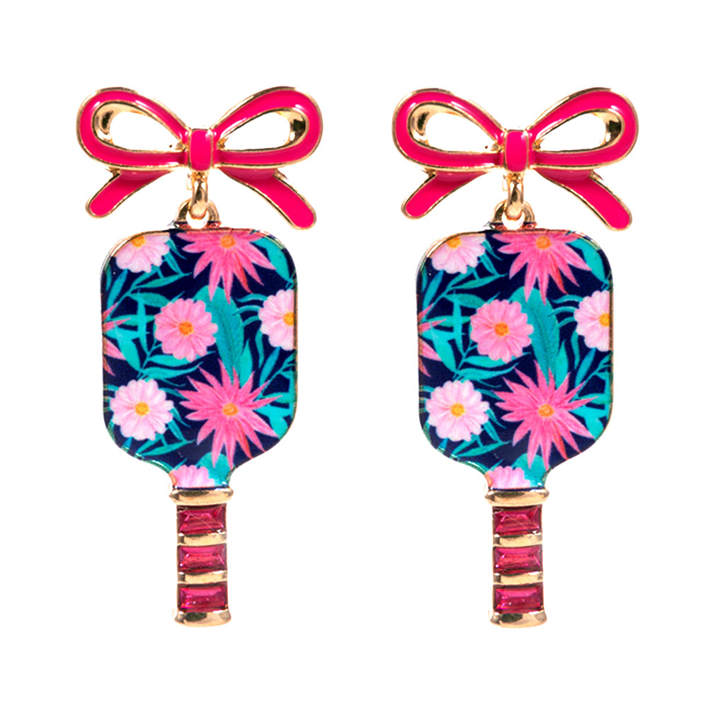 Bow Floral Pickleball Paddle Dangle Earrings
