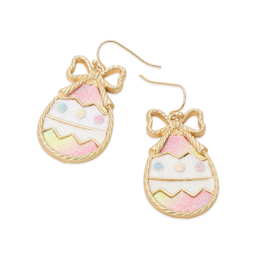 Bow Glitter Easter Egg Dangle Earrings Bow Glitter Easter Egg Dangle Earrings
