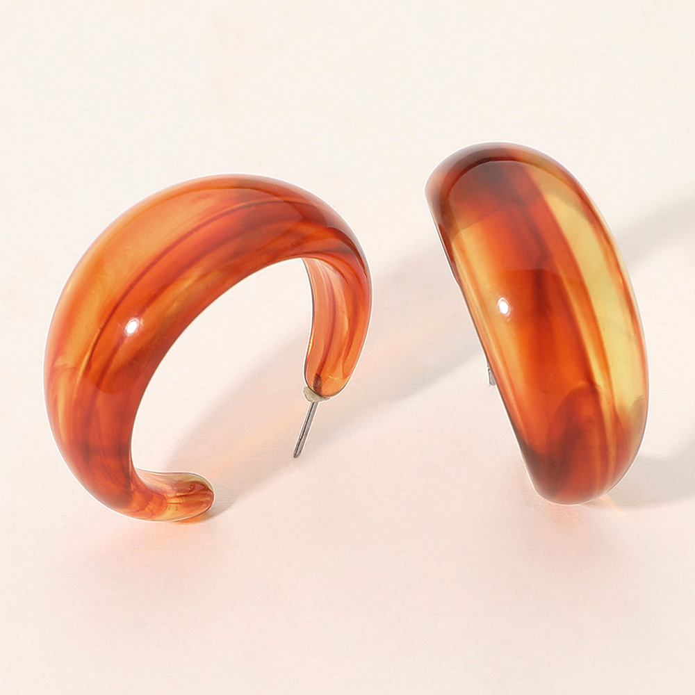 Details • Size : 1.5" X 1.5" X 0.7" • Post Back • Chunky marbled hoop earrings featuring a smooth rounded silhouette that adds a soft, modern touch to any outfit. Lightweight and easy to style, these hoops are perfect for everyday wear, gifting, or elevating casual and dressy looks with effortless contemporary flair. • Lead and Nickel Compliant