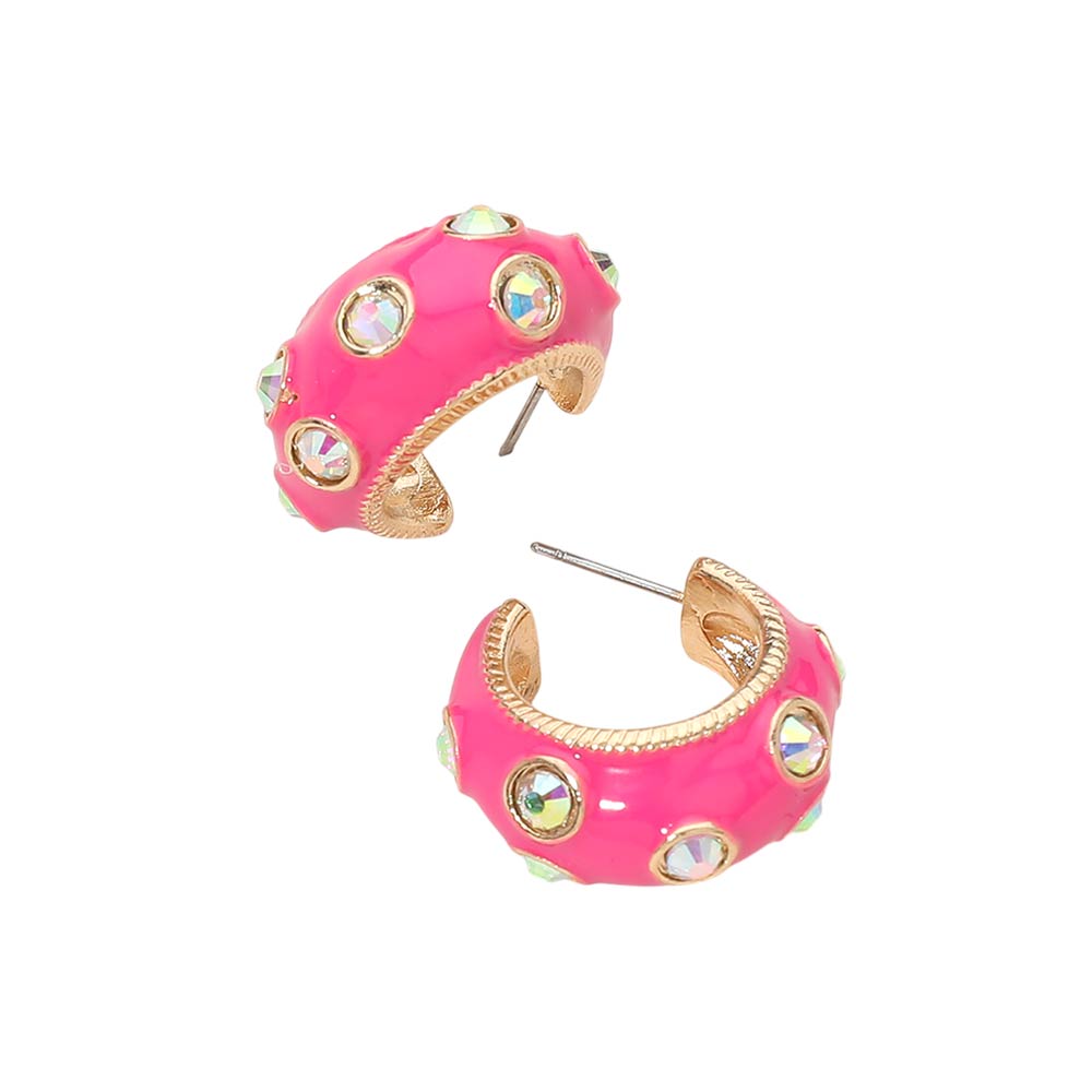 • Bold huggie hoop earrings designed with raised detailing and sparkling accent elements for a standout statement look. The compact hoop shape offers comfortable wear while adding eye catching texture and shine. Ideal for boutique collections, trend driven styling, gifting, and special occasions. A modern accessory that elevates everyday outfits with confident, fashion forward appeal.