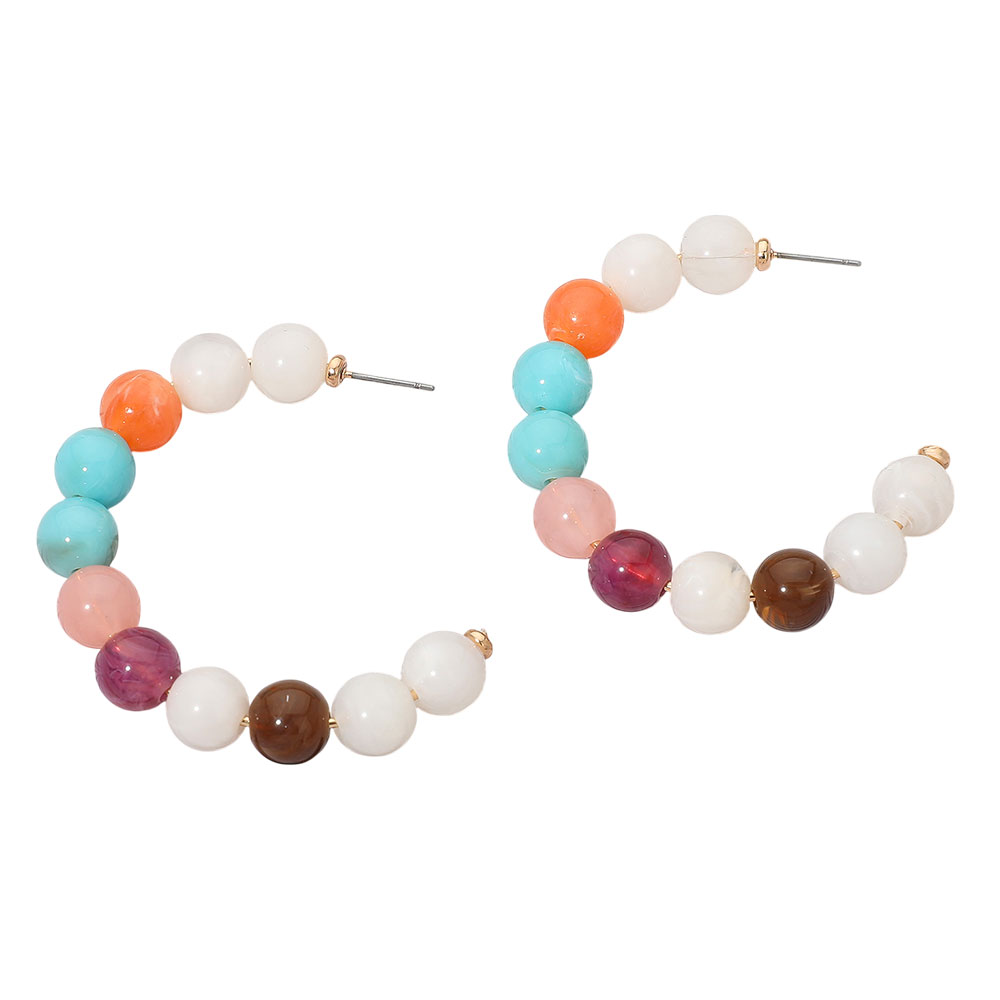 Chunky Resin Ball Beaded Hoop Earrings