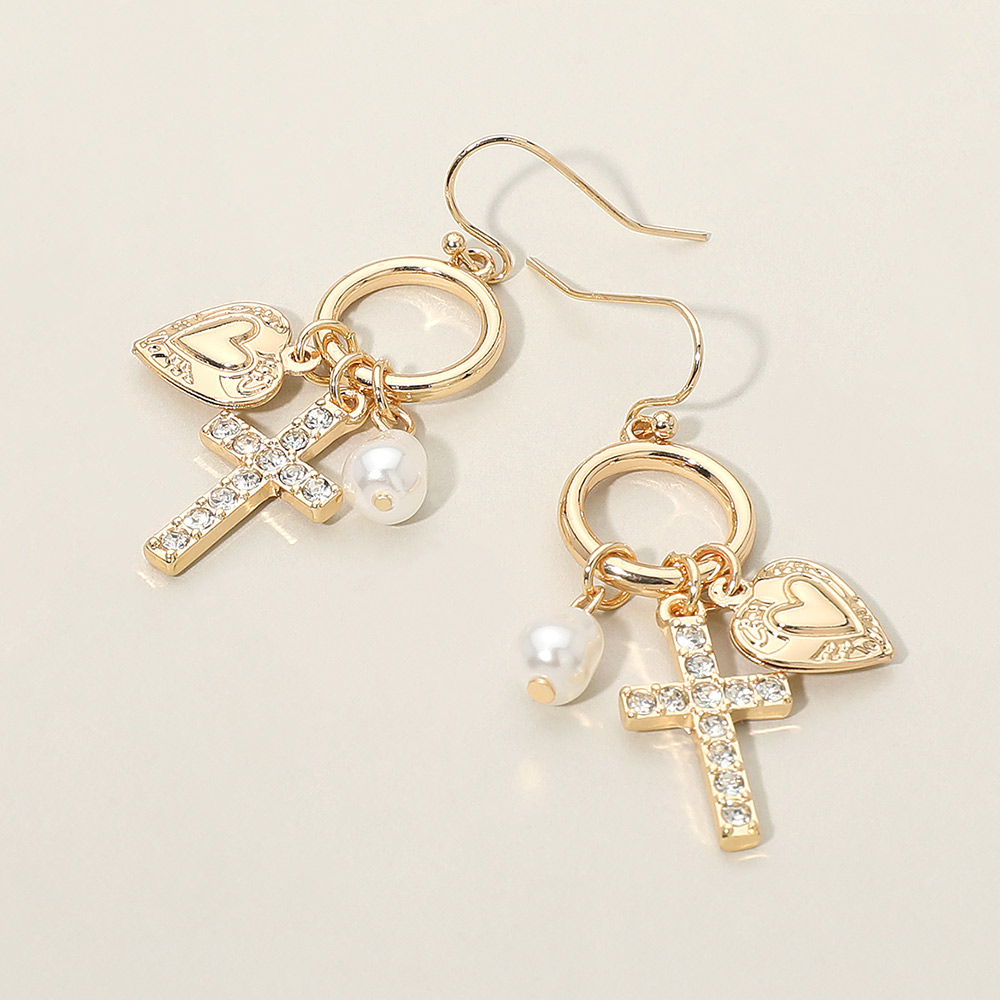 Cross Heart Pearl Charm Drop Dangle Earrings