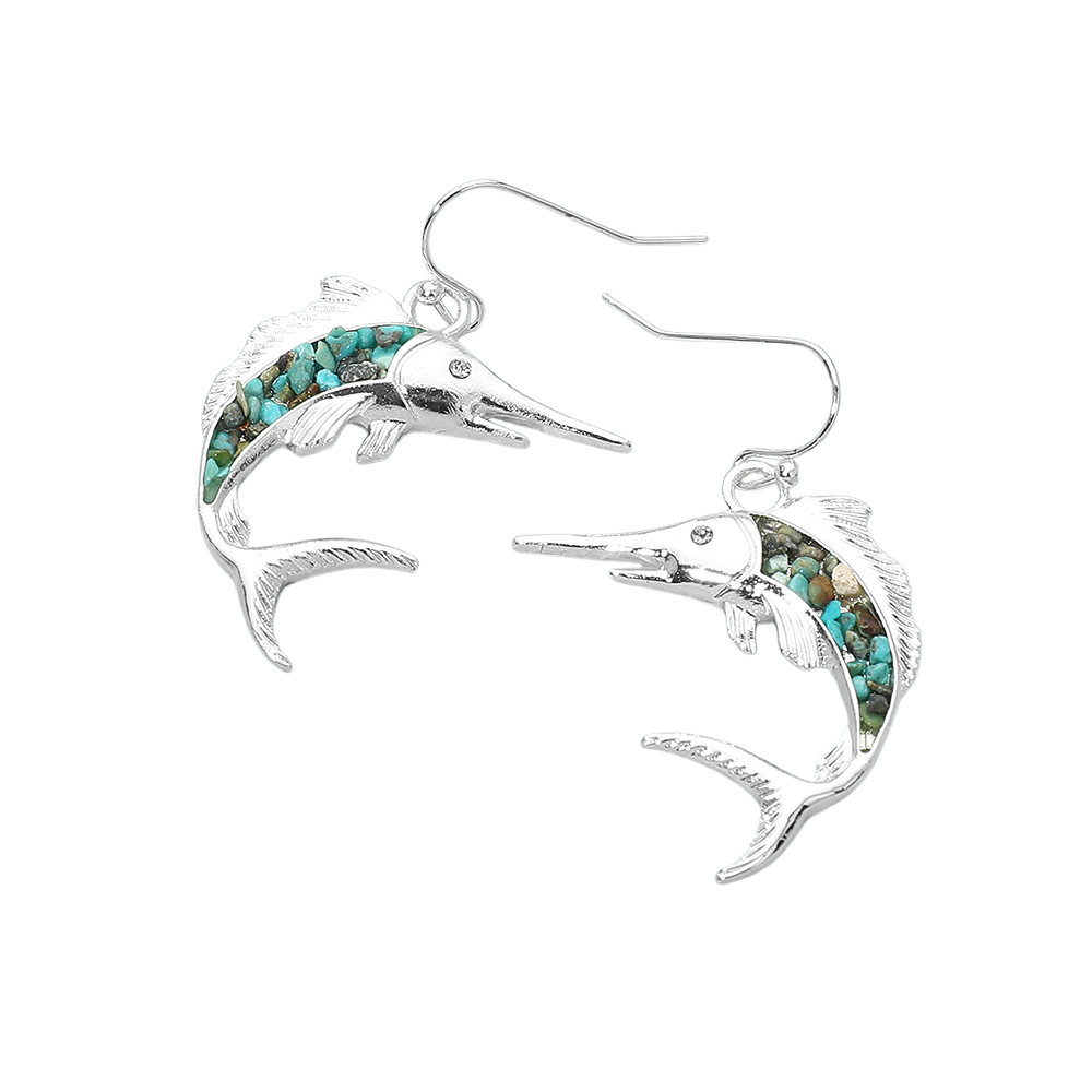 Details • Size : 1.2" X 1.75" • Fish Hook Back • Eye-catching swordfish dangle earrings inspired by ocean life and nautical style. Featuring sculpted detailing and dynamic movement, they add a playful coastal accent to everyday outfits, resort wear, and summer collections. Ideal for beach boutiques, gift shops, and seaside-themed assortments seeking fun statement accessories. • Lead and Nickel Compliant