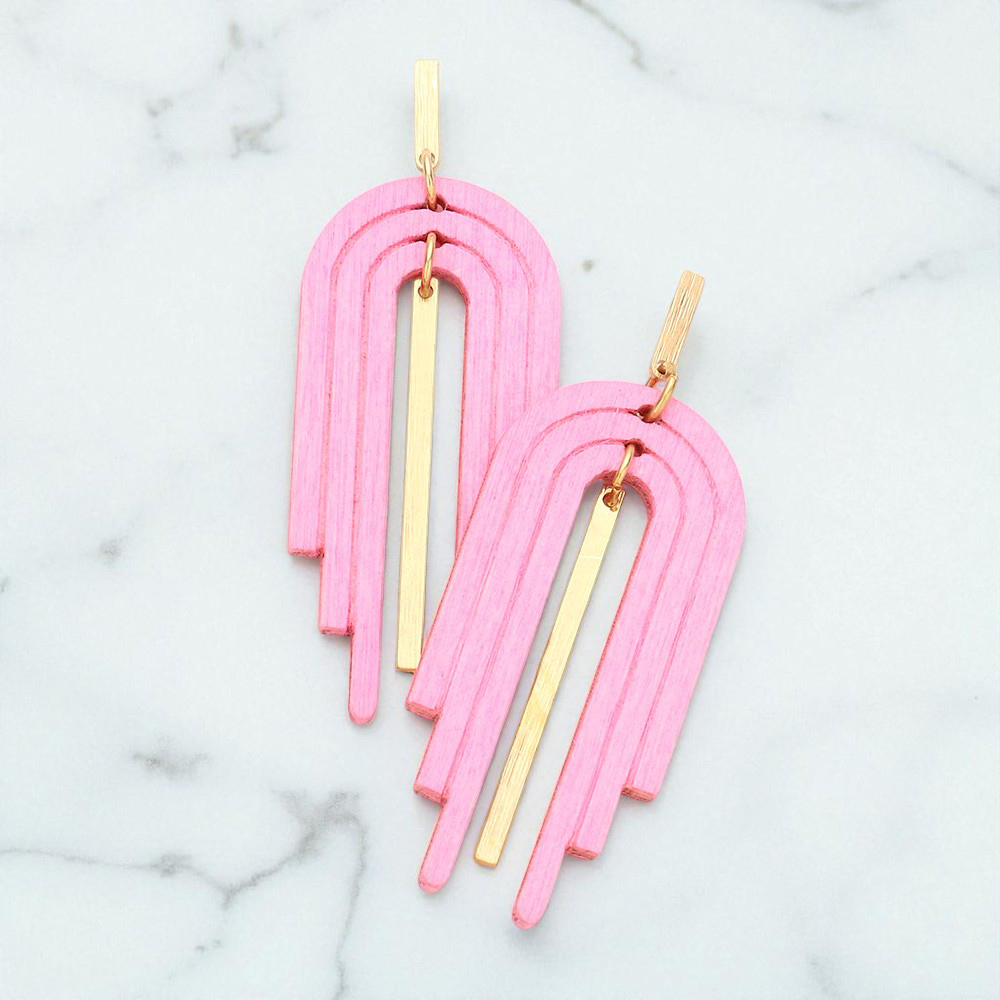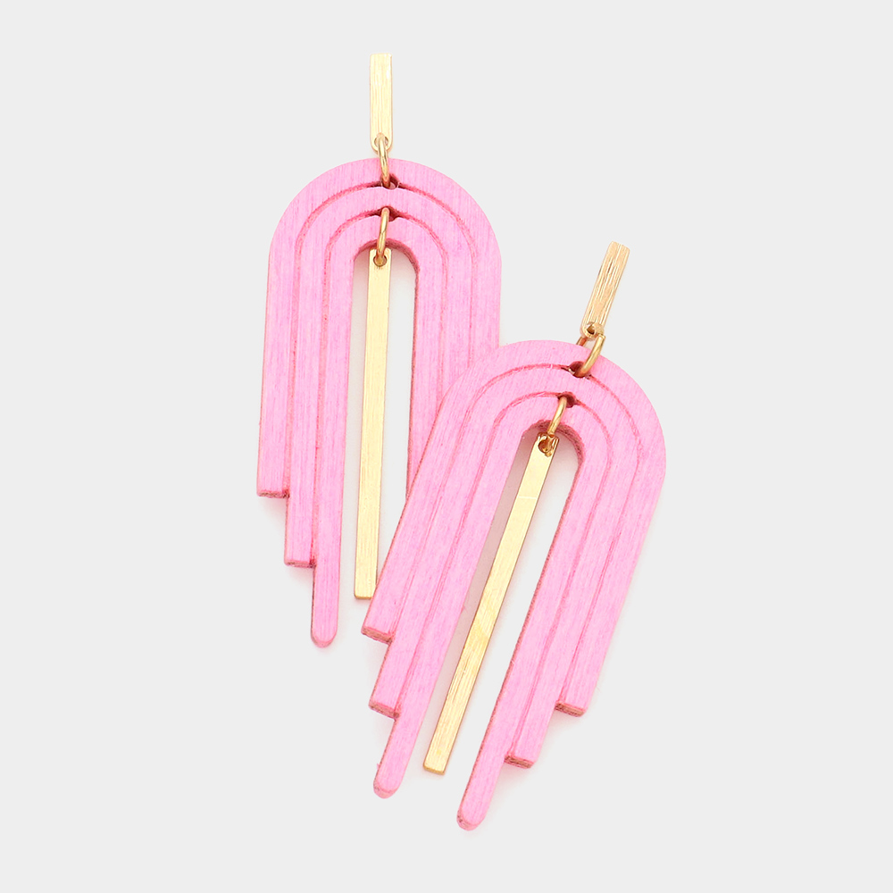 Colored Wood Open Metal Oval Link Triple Layered Necklace