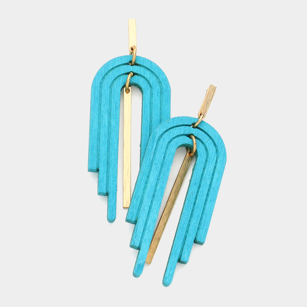 Details • Size : 0.8" X 2.25" • Post Back • Trendy geometric dangle earrings featuring layered arch shapes paired with sleek metallic accents. Lightweight and stylish, these earrings bring a modern pop to casual wear or add a fun twist to evening looks. • Lead and Nickel Compliant