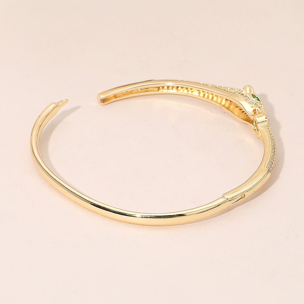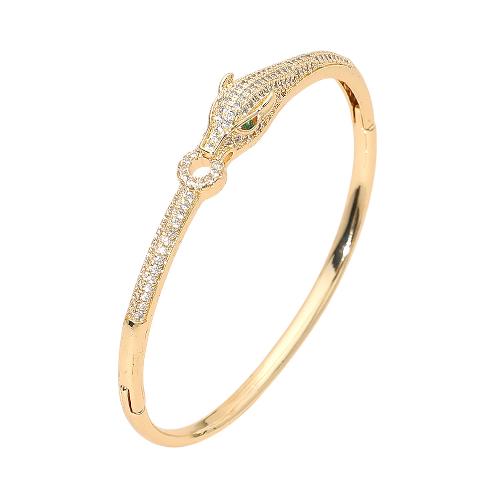 Details • Size : 0.3" H, 2.25" D • Hinged Closure • Striking bangle bracelet featuring a detailed panther head design adorned with sparkling crystals. The sleek and elegant shape adds a bold statement to any look, making it a perfect accessory for both everyday wear and special occasions with timeless sophistication. • CZ Cubic Zirconia