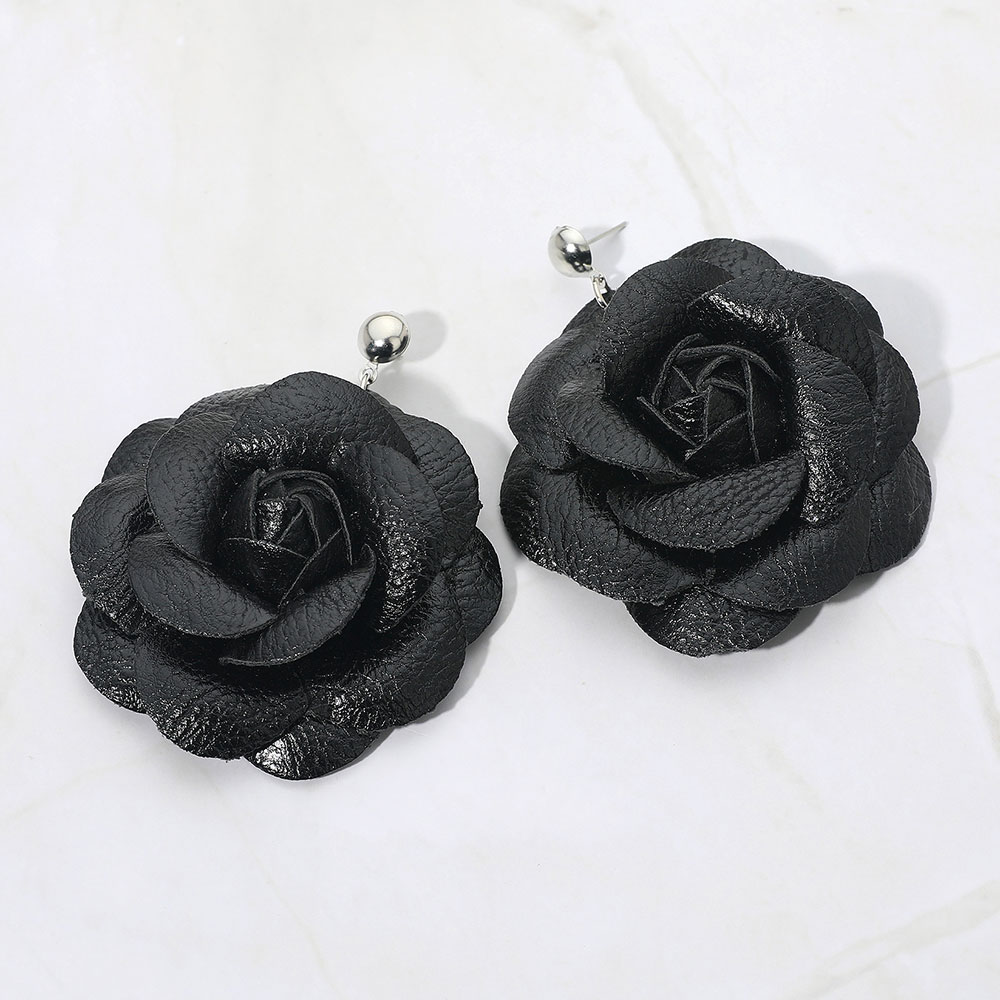Elegant Faux Leather Rose Bloom Drop Dangle Earrings Elegant Faux Leather Rose Bloom Drop Dangle Earrings Elegant Faux Leather Rose Bloom Drop Dangle Earrings