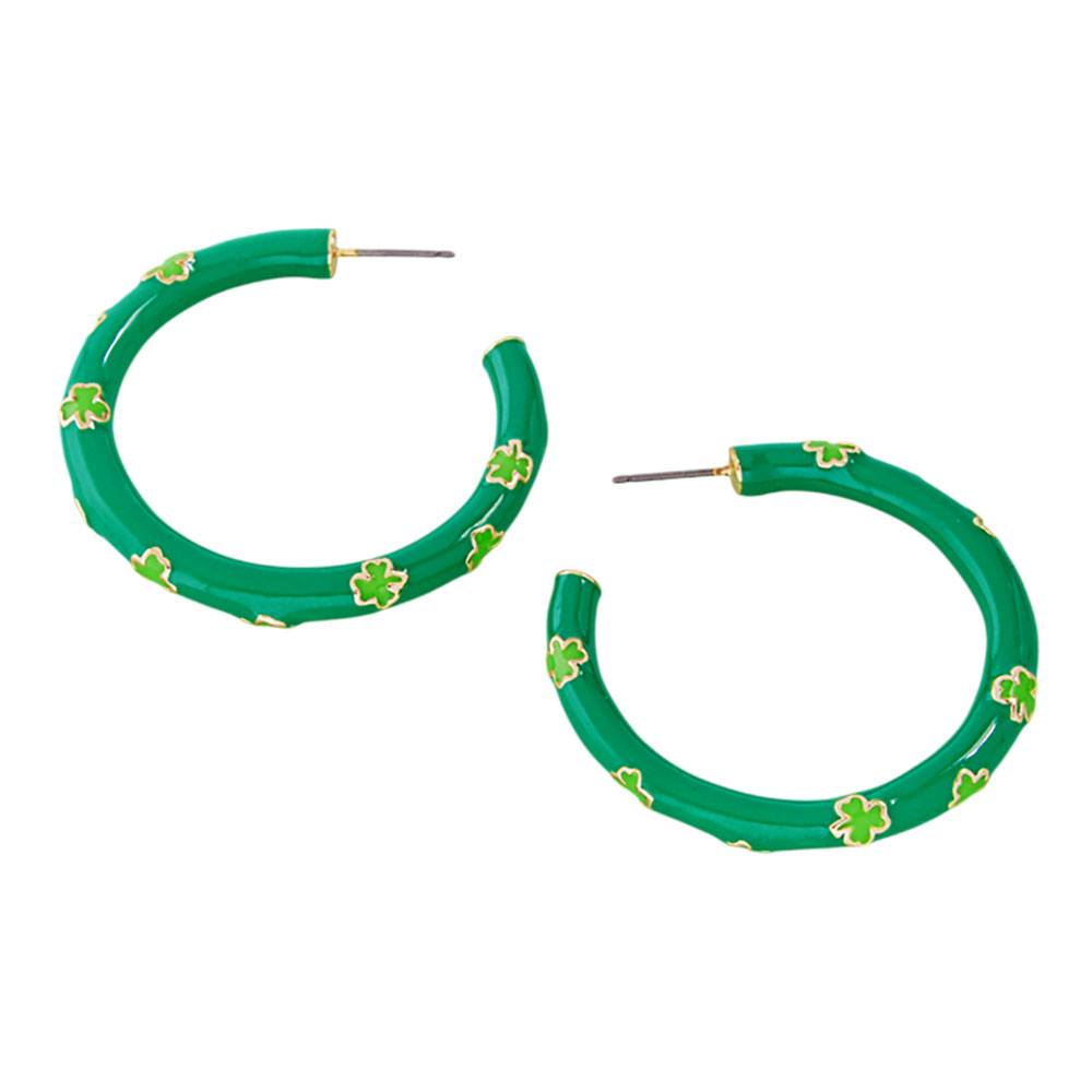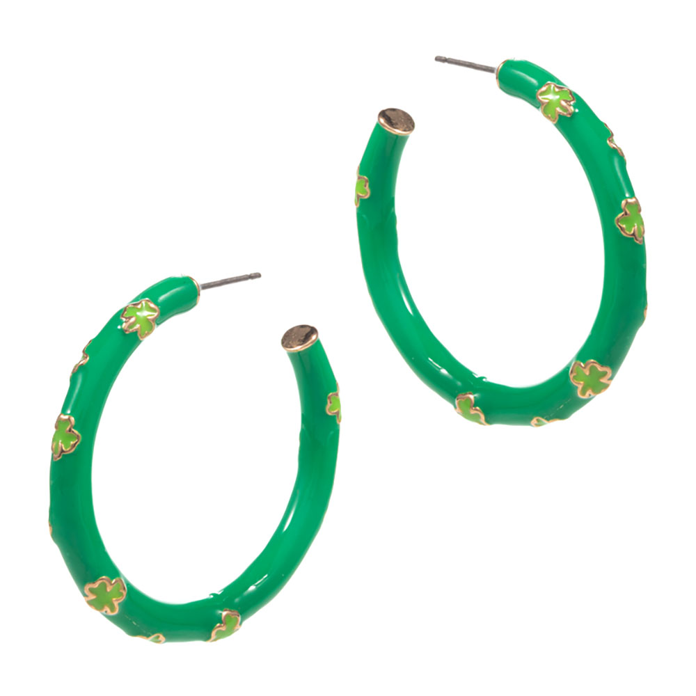 Enamel Shamrock Open Hoop Earrings Enamel Shamrock Open Hoop Earrings Enamel Shamrock Open Hoop Earrings