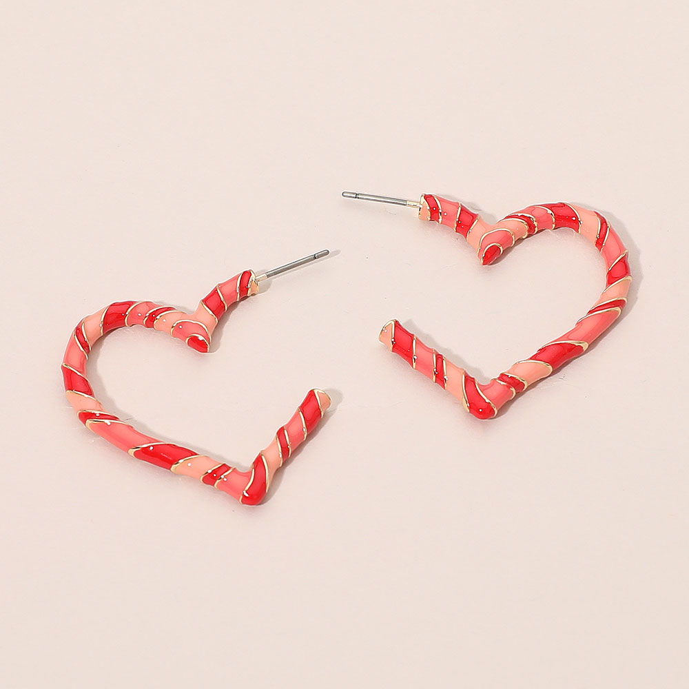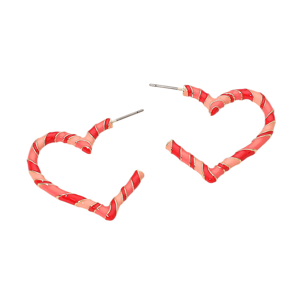 Enamel Twisted Candy Cane Open Heart Hoop Earrings