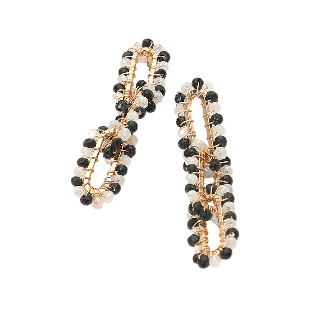 Details • Size : 0.5" X 2.1" • Post Back • Add a chic edge to your look with geometric beaded drop earrings designed with linked shapes and intricate detailing. Perfect for fashion-forward outfits, parties, or casual wear, these earrings bring a striking statement to any jewelry collection. • Lead and Nickel Compliant
