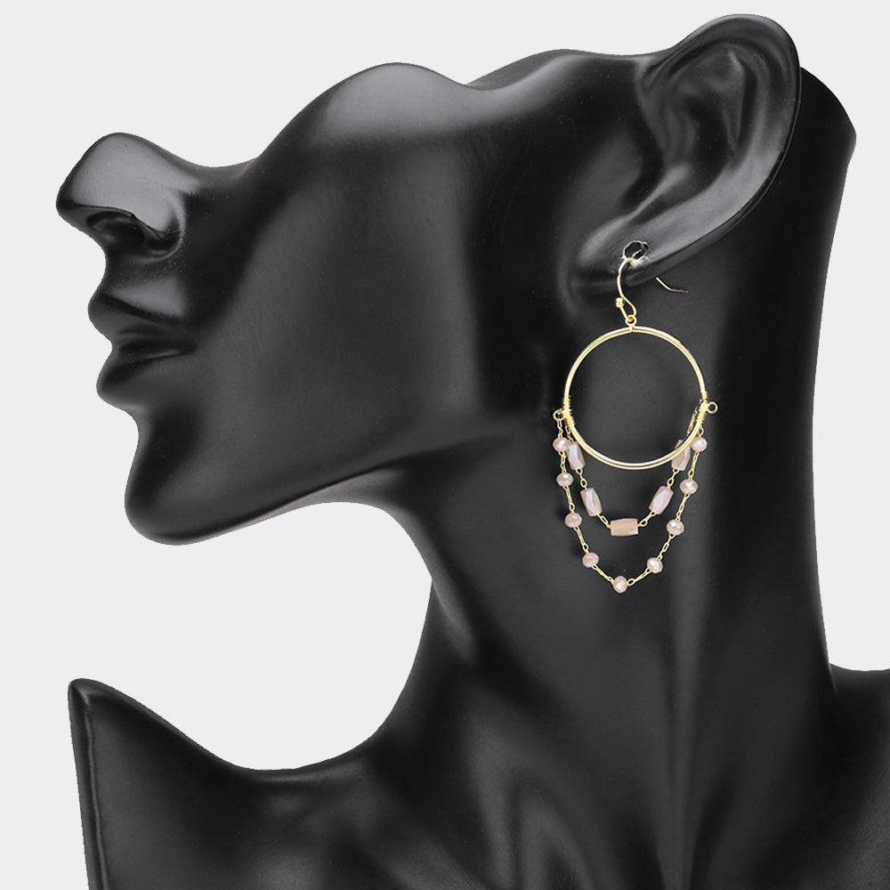 Faceted Beaded Loop Drop Circle Dangle Earrings