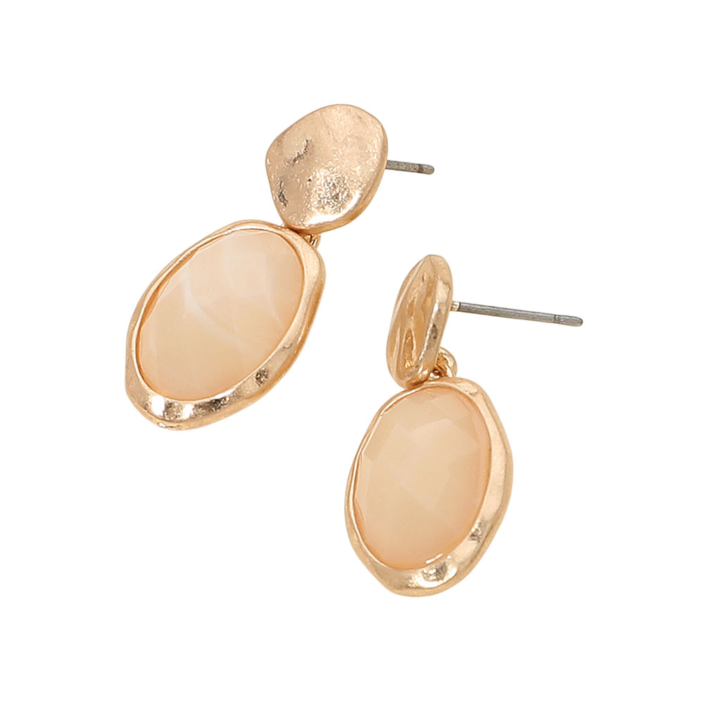 • These faceted oval drop earrings feature a striking gemstone-inspired center set within an organic, sculpted metallic frame. Versatile and lightweight, they add polished sophistication to everyday outfits or evening looks, making them a standout accessory for modern, elegant style.