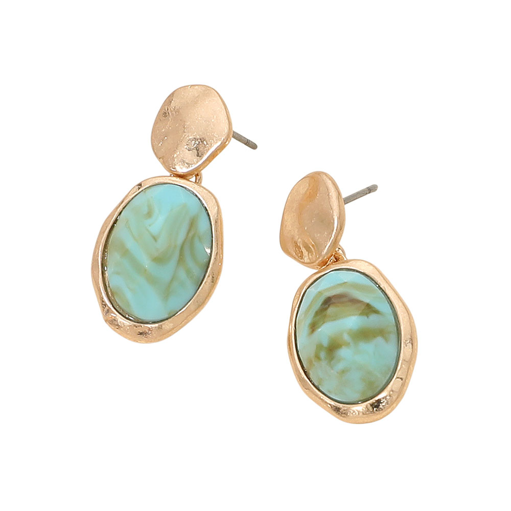 • These faceted oval drop earrings feature a striking gemstone-inspired center set within an organic, sculpted metallic frame. Versatile and lightweight, they add polished sophistication to everyday outfits or evening looks, making them a standout accessory for modern, elegant style.