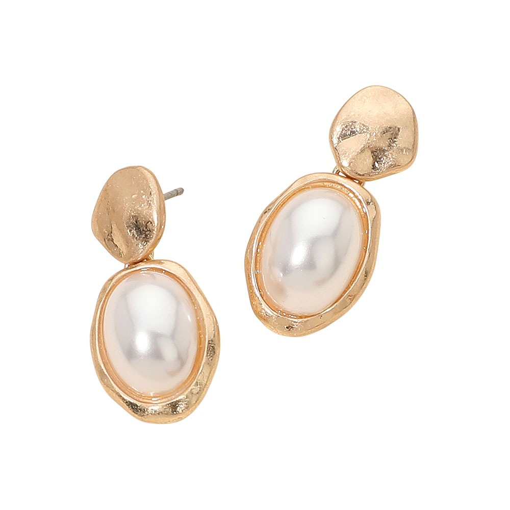 Details • Size : 0.5" X 1.2" • Post Back • These faceted oval drop earrings feature a striking gemstone-inspired center set within an organic, sculpted metallic frame. Versatile and lightweight, they add polished sophistication to everyday outfits or evening looks, making them a standout accessory for modern, elegant style. • Lead and Nickel Compliant
