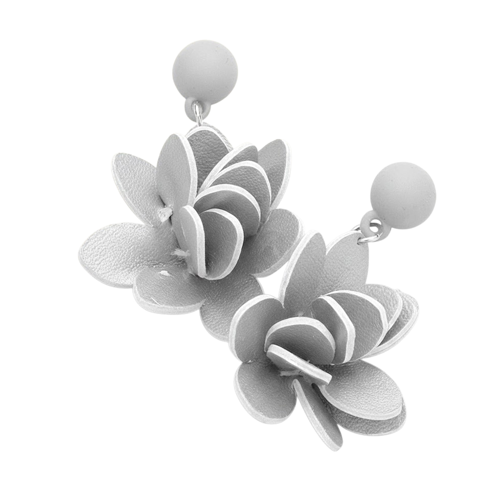 Faux Leather Flower Drop Dangle Earrings Faux Leather Flower Drop Dangle Earrings